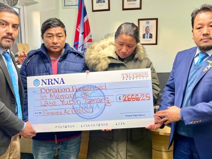 बेलायतमा कार दुर्घटनामा मृत्यु भएका तामाङका परिवारलाई एनआरएनए यूकेद्वारा झन्डै ५ लाख सहयोग हस्तान्तरण