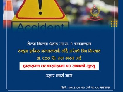 तीर्थयात्री बोकेको जिप रोल्पामा दुर्घटना : कम्तीमा २० जनाको मृत्यु