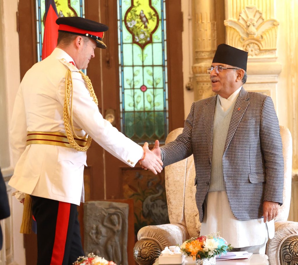 काठमाडौँ । प्रधानमन्त्री पुष्पकमल दाहाल ‘प्रचण्ड’सँग बेलायती सेनाका सेनाध्यक्ष जनरल सर प्याट्रिक स्यान्डर्सले शिष्टाचार भेट गर्नुभएको छ ।