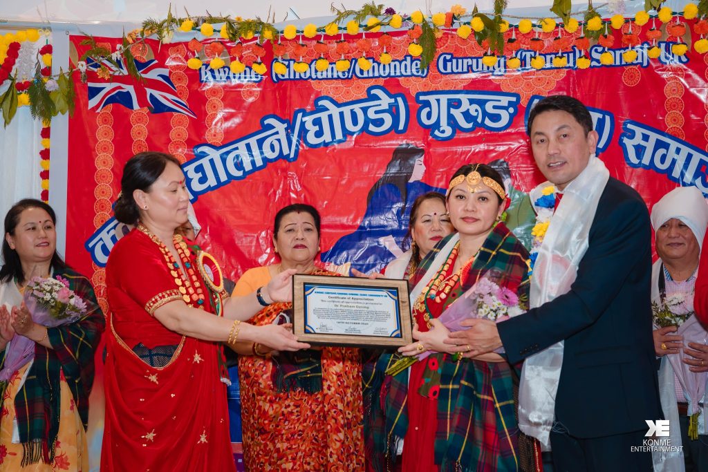 कार्यक्रममा यूकेका सफल व्यवसायी तथा धेरै नेपाली दाजुभाइबहिनीहरूलाई रोजगारीका अवसर प्रदान गर्ने क्वोंने (घोताने/घोन्डे) गुरुङ (तमु) समाजका सदस्य योगेन क्षेत्रीलाई सम्मान गरिएको थियो ।