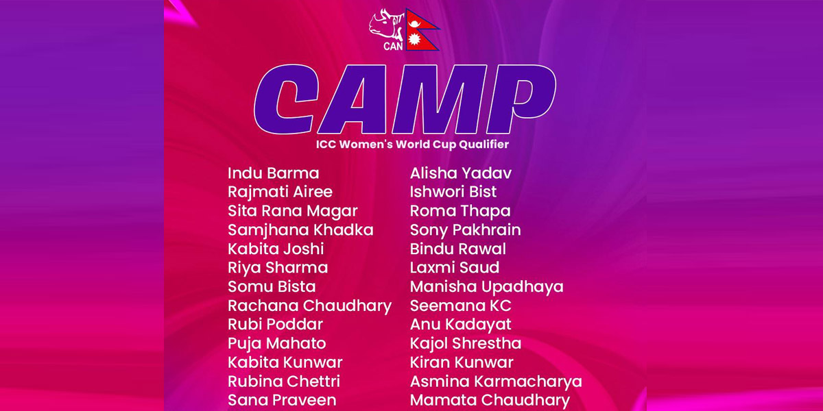 काठमाडौँ । आइसिसी महिला टि-२० विश्वकपको ग्लोबल क्वालिफायर खेल्ने नेपालको प्रारम्भिक टोली घोषणा भएको छ । नेपाल क्रिकेट सङ्घ (क्यान) ले बिहीबार २६ सदस्यीय महिला क्रिकेटको प्रारम्भिक टोली घोषणा गरेको हो ।