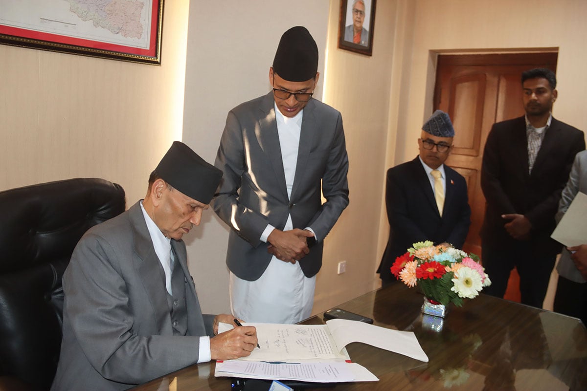 नवनियुक्त परराष्ट्रमन्त्री शर्माले राष्ट्रपति रामचन्द्र पौडेलसमक्ष पद तथा गोपनीयताको शपथ लिनुभएको छ । राष्ट्रपति कार्यालयमा आज आयोजित विशेष समारोहमा उहाँले शपथ लिनुभएको हो ।