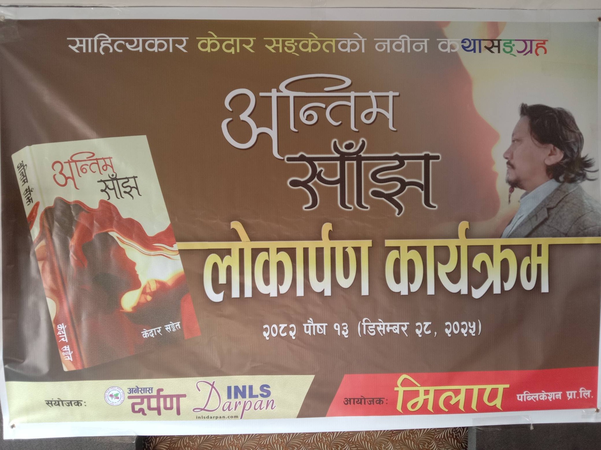 ललितपुर मानभवनको अइला लन्जमा आइतबार २८ डिसेम्बर २०२५ मा एक समारोहबीच सङ्केतको नवीनतम् कृति ‘अन्तिम साँझ’ नेपाल स्रष्टा समाजका अध्यक्ष वरिष्ठ साहित्यकार श्रीओम श्रेष्ठ ‘रोदन’, महाकाव्यकार खेमनाथ दाहाल, साहित्यकार प्रगति राई, कीर्तिमानी सङ्गीतकार तथा उपन्यासकार सन्तोष श्रेष्ठलगायतले संयुक्त रुपमा विमोचन गर्नुभएको हो । मिलाप पब्लिकेसनले प्रकाशन गरेको कथासङ्ग्रह अन्तिम साँझमा पहिचानजनित कथासहित समसामायिक १५ वटा कथाहरु सङ्ग्रहित छन् । यो उहाँको सङ्केतको यो नवौं कृति हो ।