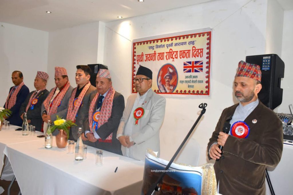 लन्डन । संयुक्त राष्ट्रवादी नेपाली संगठन बेलायतले राष्ट्रनिर्माता श्री ५ बडामहाराजधिराज पृथ्वीनारायण शाहको ३०४औँ जन्मजयन्ती तथा राष्ट्रिय एकता दिवस मनाएको छ ।