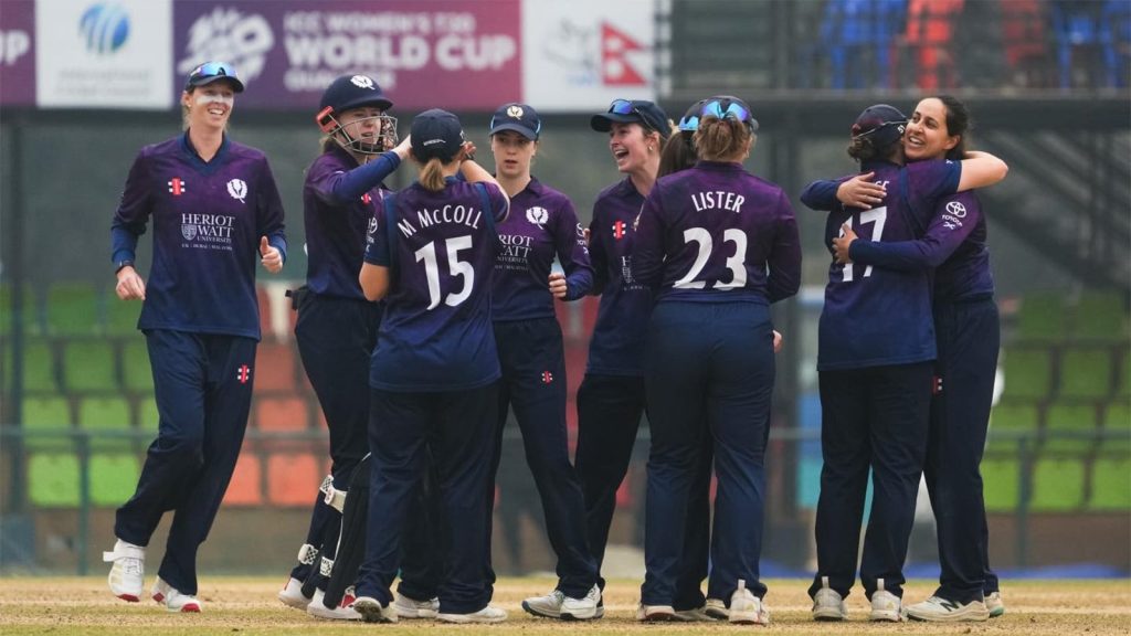 काठमाडौं । आइसिसी महिला टी–२० विश्वकप ग्लोबल छनोट प्रतियोगिताअन्तर्गत बुधबार भएको खेलमा स्कटल्यान्डले आयरल्यान्डमाथि जित निकालेको छ । त्रिभुवन विश्वविद्यालय क्रिकेट रङ्गशालामा सम्पन्न सुपरसिक्स चरणको पहिलो खेलमा स्कटल्यान्डले जित निकालेको हो ।