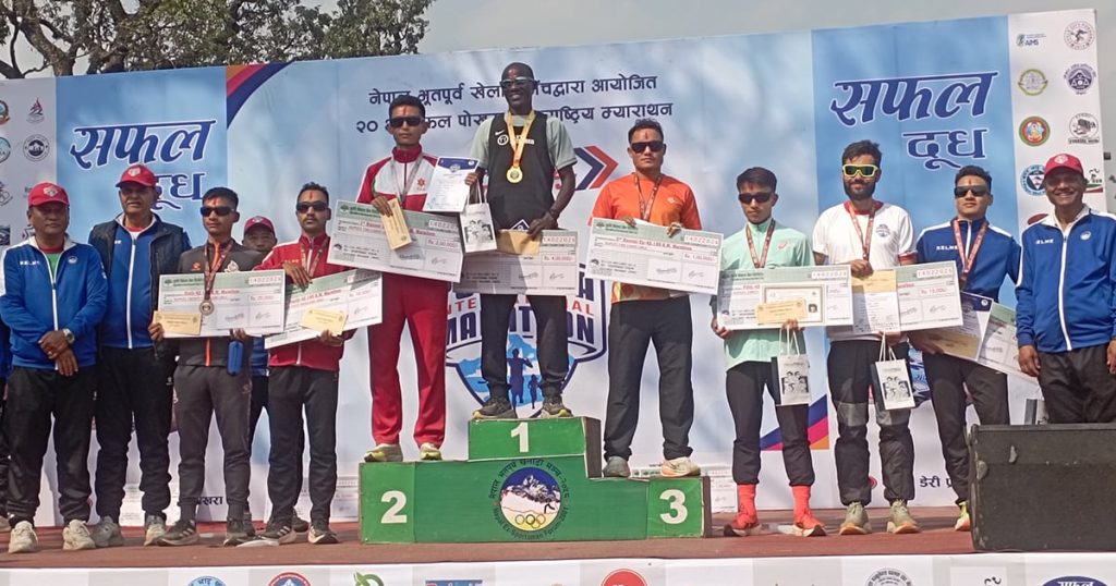 म्याराथनको नेपाल विधामा गजेन्द्र राई प्रथम भए । उनले नगद रु एक लाख र मेडल प्राप्त गरे । सो स्पर्धामा हरिकुमार रिमालले दोस्रो हुँदै रु ५० हजार र करण रावलले तेस्रो स्थान प्राप्त गर्दै रु २५ हजारसहित मेडल जिते । प्रतियोगिताअन्तर्गत गण्डकी ‘क्याटगोरी’मा पर्वतका सुवास गुरुङ प्रथम, गोरखाका निरोज भट्ट दोस्रो र स्याङ्जाका धनु मानन्धर तेस्रो भए । सो स्पर्धामा प्रथम हुने गुरुङले रु ५० हजार, दोस्रो हुनेले रु ३० हजार र तेस्रो हुने रु २० हजार पुरस्कार पाए ।