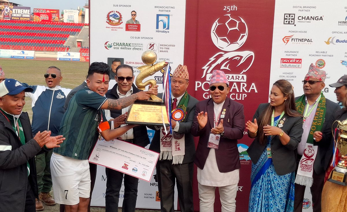 कास्की । मोफसलको पुरानो र प्रतिष्ठित राष्ट्रिय तथा अन्तरराष्ट्रिय आमन्त्रित आहा रारा पोखरा गोल्डकपको २५औँ संस्करणको उपाधि आयोजक सहारा क्लब पोखराले जितेको छ ।