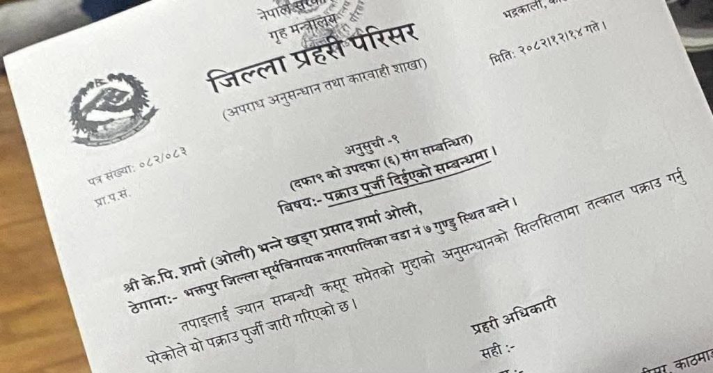 गत भदौ २३ र २४ को घटना छानबिनका लागि गठित गौरीबहादुर कार्की नेतृत्वको जाँचबुझ आयोगको प्रतिवेदन कार्यान्वयनका लागि उहाँलाई पक्राउ गरिएको हो । पूर्व प्रधानमन्त्री केपी शर्मा ओली र पूर्व गृहमन्त्री रमेश लेखक पक्राउका लागि गृह मन्त्रालय जाहेरीकर्ता बनेर पत्र पाएपछि प्रहरीले जेन–जी आन्दोलन दमन आरोपमा ज्यानसम्बन्धी मुद्दामा अनुसन्धान सुरु गरेको छ ।