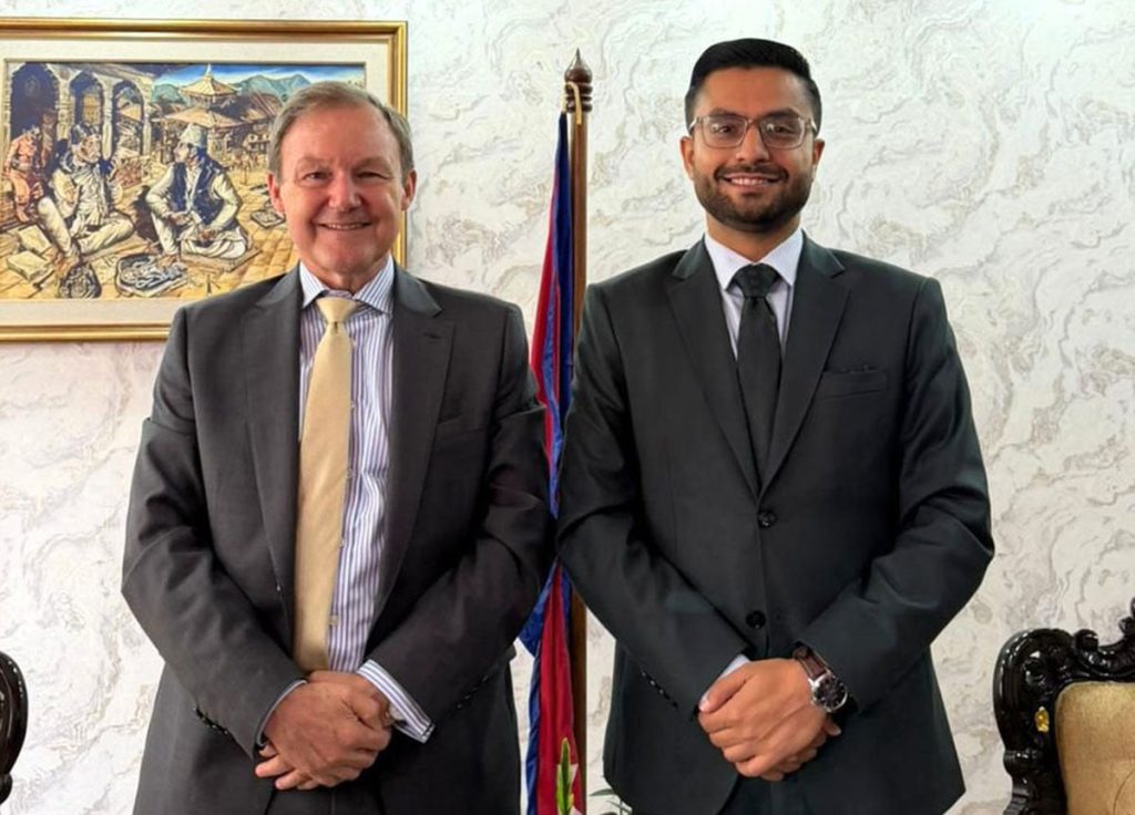 काठमाडौँ । नेपालका शिक्षा, विज्ञान तथा प्रविधिमन्त्री सस्मित पोखलेलसँग नेपालका लागि संयुक्त अधिराज्यका राजदूत रब फेनले शिष्टाचार भेटवार्ता गर्नुभएको छ ।