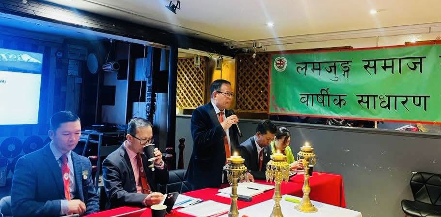 लन्डन । लमजुङ समाज यूकेको १९औं वार्षिक साधारणसभा सम्पन्न भएको छ । अध्यक्ष पूर्णराज गुरुङको सभापतित्वमा अल्डरसटस्थित ठमेल रेष्टुरेन्टमा शनिबार १८ अप्रिल २०२६ मा आयोजित सभामा विभिन्न पदाधिकारी तथा सदस्यहरूको सहभागिता रहेको थियो ।