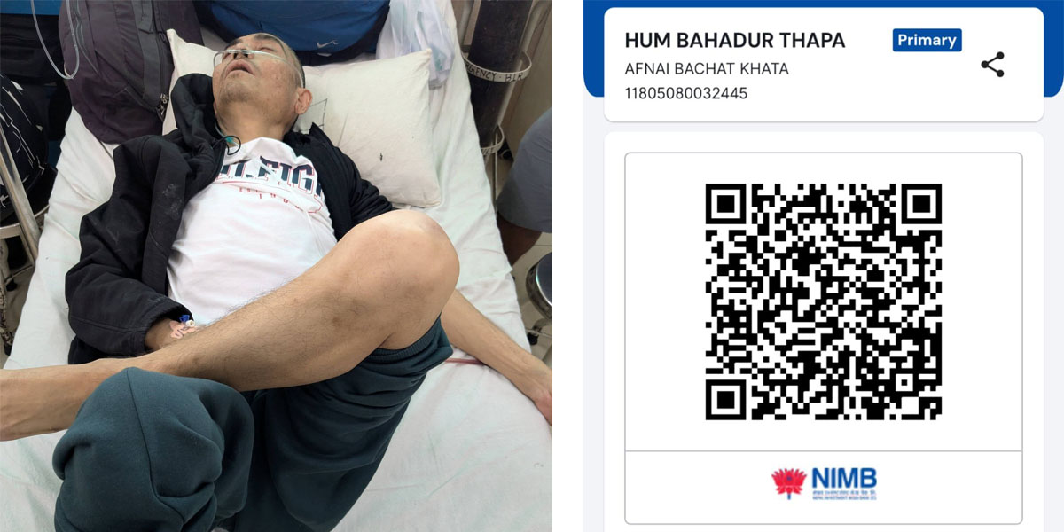 गोरे बहादुर खपाङ्गी फाउन्डेसनका संस्थापक अध्यक्ष हुमबहादुर थापाले बुधबार जारी गरेको अपिलमा बिरामीको जीवन रक्षाका लागि आर्थिक सहयोग अत्यन्त आवश्यक रहेको उल्लेख गर्नुभएको छ। उहाँले सहयोगका लागि क्यूआर कोडमार्फत रकम पठाउन सकिने व्यवस्था गरिएको बताउनुभयो ।